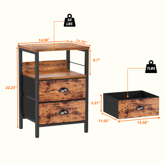 Symnic Nightstand with 2 Fabric Drawers Bedroom Furniture